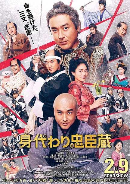 《辉夜姬想让人告白~天才们的恋爱头脑战~》真人电影导演河合勇人,《替身忠臣藏》再展改编能手,将时代剧《忠臣藏》添加「替身」元素的同名小说搬上银幕。电影讲述高家吉良遭赤穗藩主浅野砍杀重伤,家臣找来吉良的和尚弟弟充当替身,应付幕府召见,另一头47位武士正准备为被迫切腹自尽的浅野展开复仇,这个替身城主该不该继续演下去?喜剧男星室刚一人分饰两角,率众武士复仇的永山瑛太,以及川口春奈、北村一辉、柄本明等一票演技派吸睛演出,把时代剧魔改荒谬喜剧,令人捧腹大笑之余,更好奇剧情还能怎么走下去?